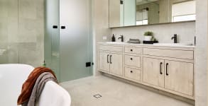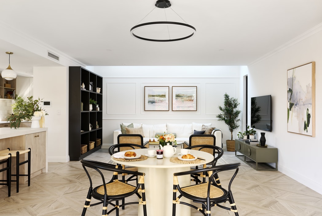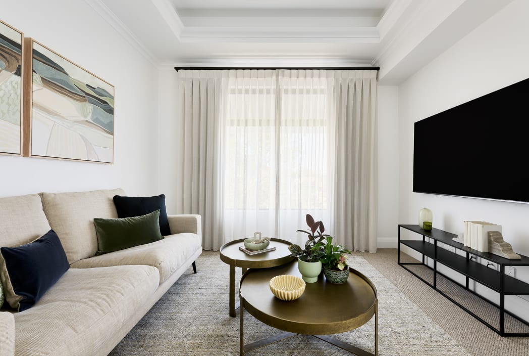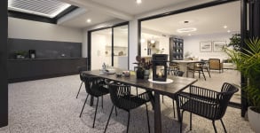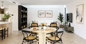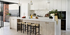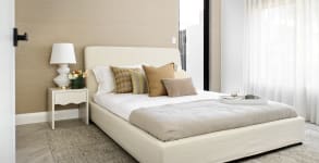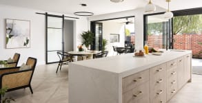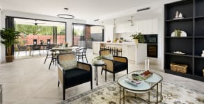 Step through to the stunning living area and the home opens to a space which is perfect for year-round entertaining with bifold doors opening onto the alfresco and a kitchen which has been beautifully designed with lustrous lines and a subtle pallet. The scullery hides away a double sink, fridge recess and appliance cupboard, the perfect space for entertaining whatever the occasion.