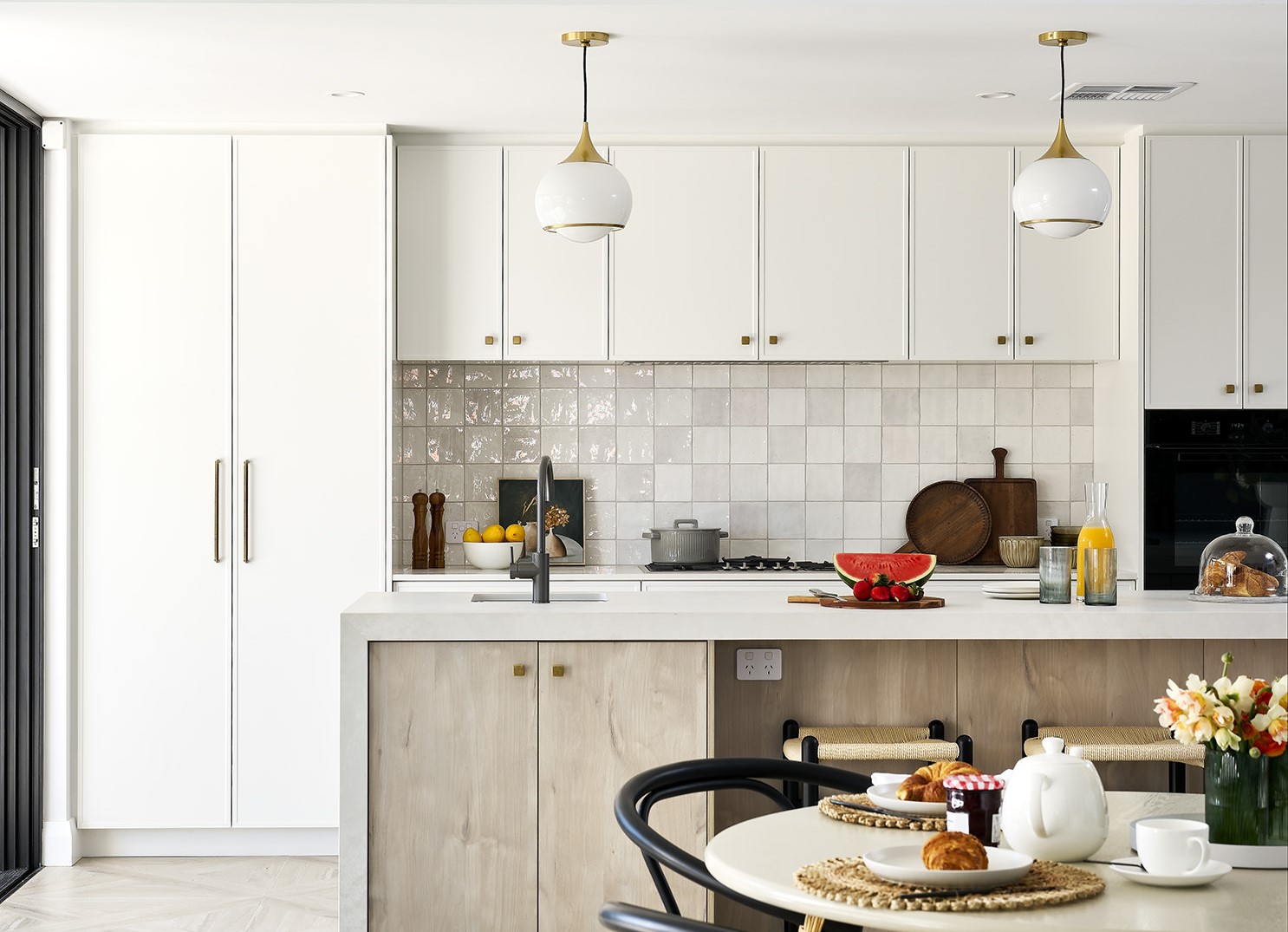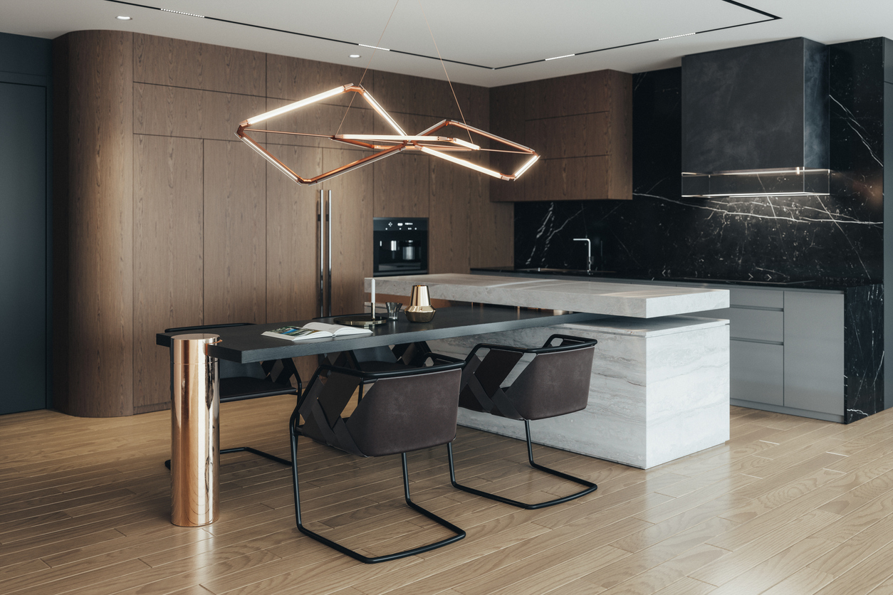 Tip: Tick two trends off your list and opt for statement lighting in your kitchen.
