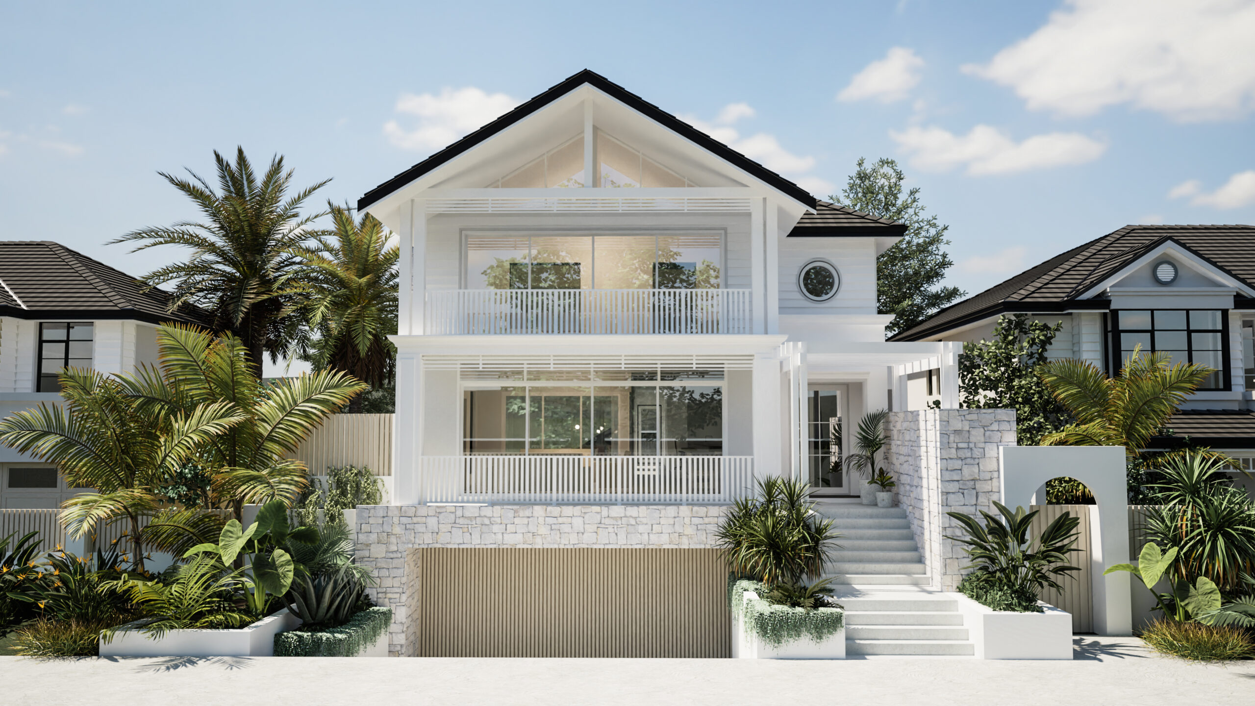So, what makes texture so effective? It transforms flat, blank surfaces into something with movement and variation. Each material interacts with light in its own way. Stone softens it, timber catches and stretches it, and render holds it in subtle curves.