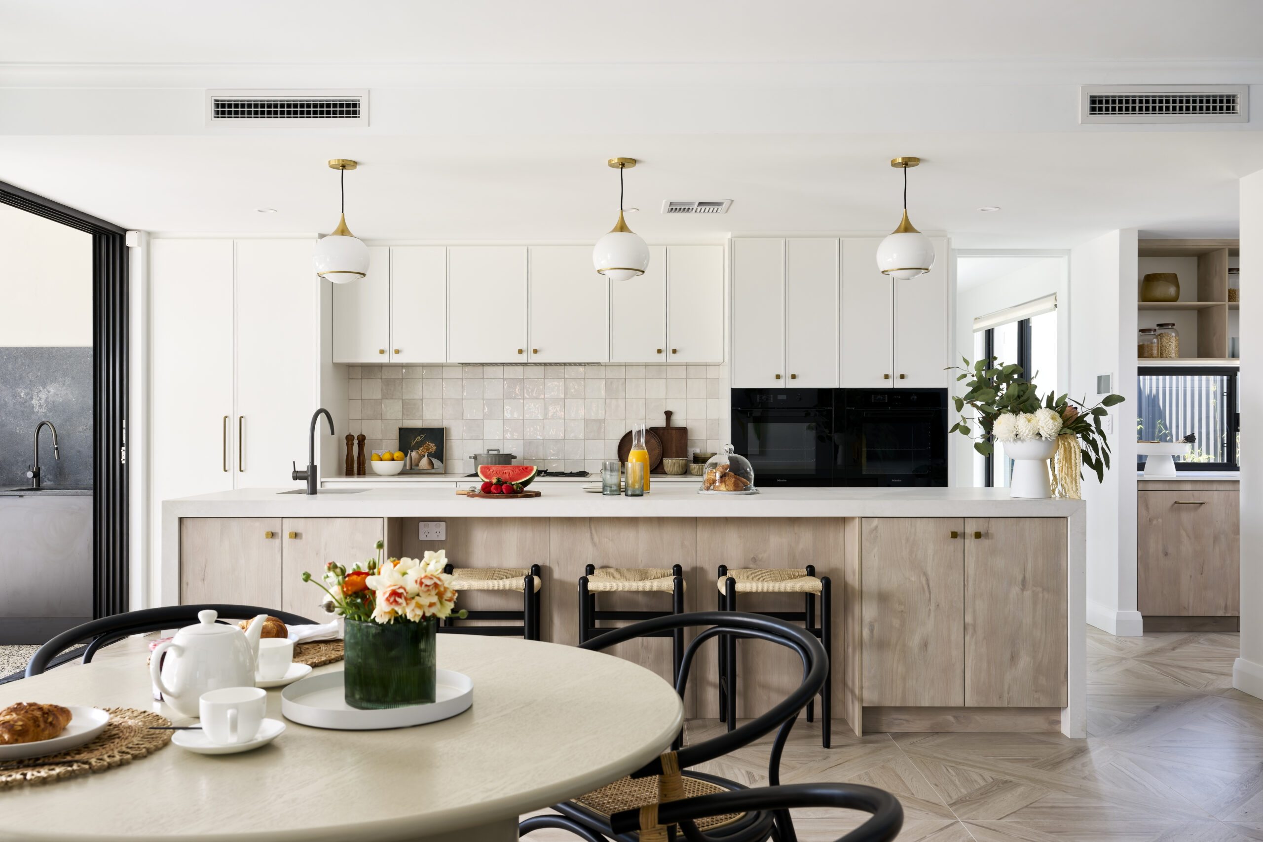 • Showcase joinery with pocket doors that disappear to reveal coffee stations or a back‑of‑house scullery.
